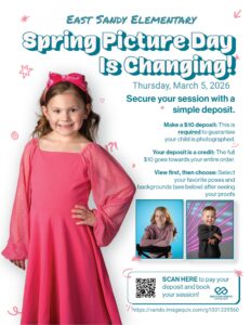We will have Eastman Adams coming to East Sandy on March 5, 2026 for spring pictures. This year families will need to provide a $10 deposit before their child’s picture is taken. They will only be pulling students for pictures that they can see the deposit has been made. Please read the flyer for more information/