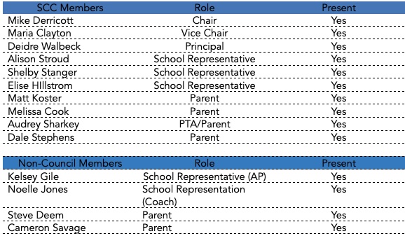 Maria likes the idea of students knowing teacher goals.  Dale inquired about goal alignment with SCC and teachers and wanted to know what SCC can do to be more helpful in the classroom.